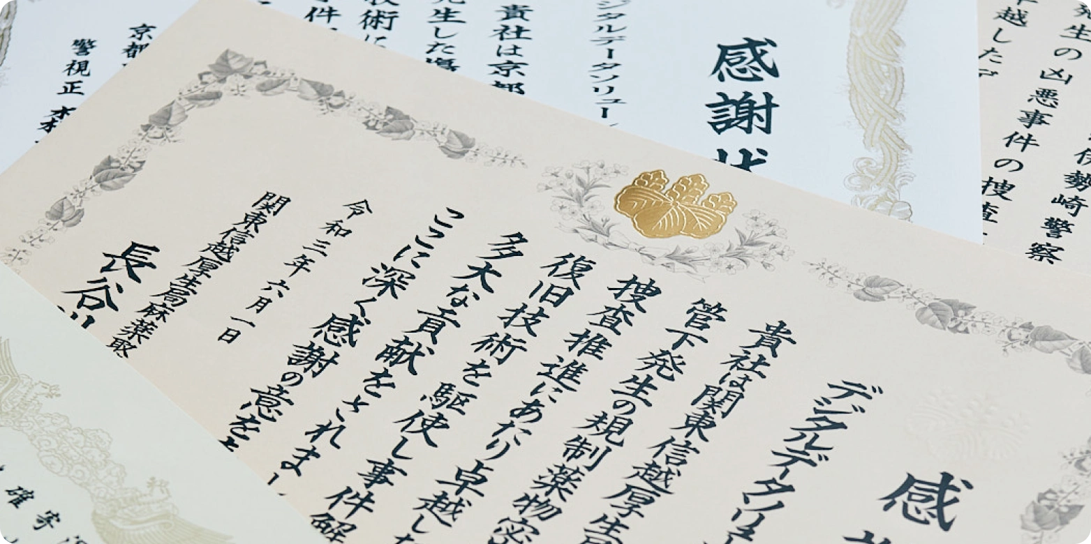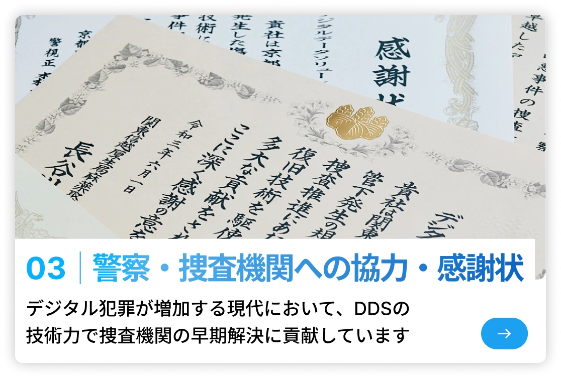 デジタル犯罪が増加する現代において、DDSの 技術力で捜査機関の早期解決に貢献しています