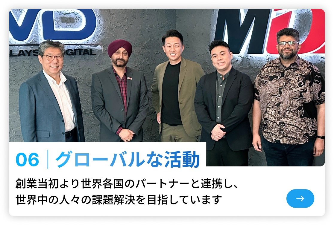 創業当初より世界各国のパートナーと連携し、 世界中の人々の課題解決を目指しています